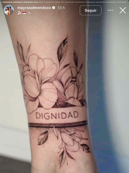Mayra publicó, si previa ni presentación, la foto de uno de sus tobillos, ilustrado con la imagen de una tobillera hecha con flores y que reza “Dignidad”, en homenaje a CFK.
