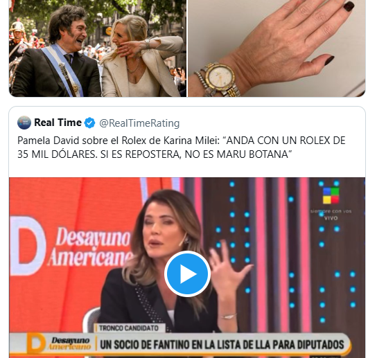 Además de desmentir la información, la secretaria General aclaró que su reloj es de la marca Grovana y “vale menos de 1000 dólares“, y anunció que iniciaría acciones legales por “calumnias e injurias”.